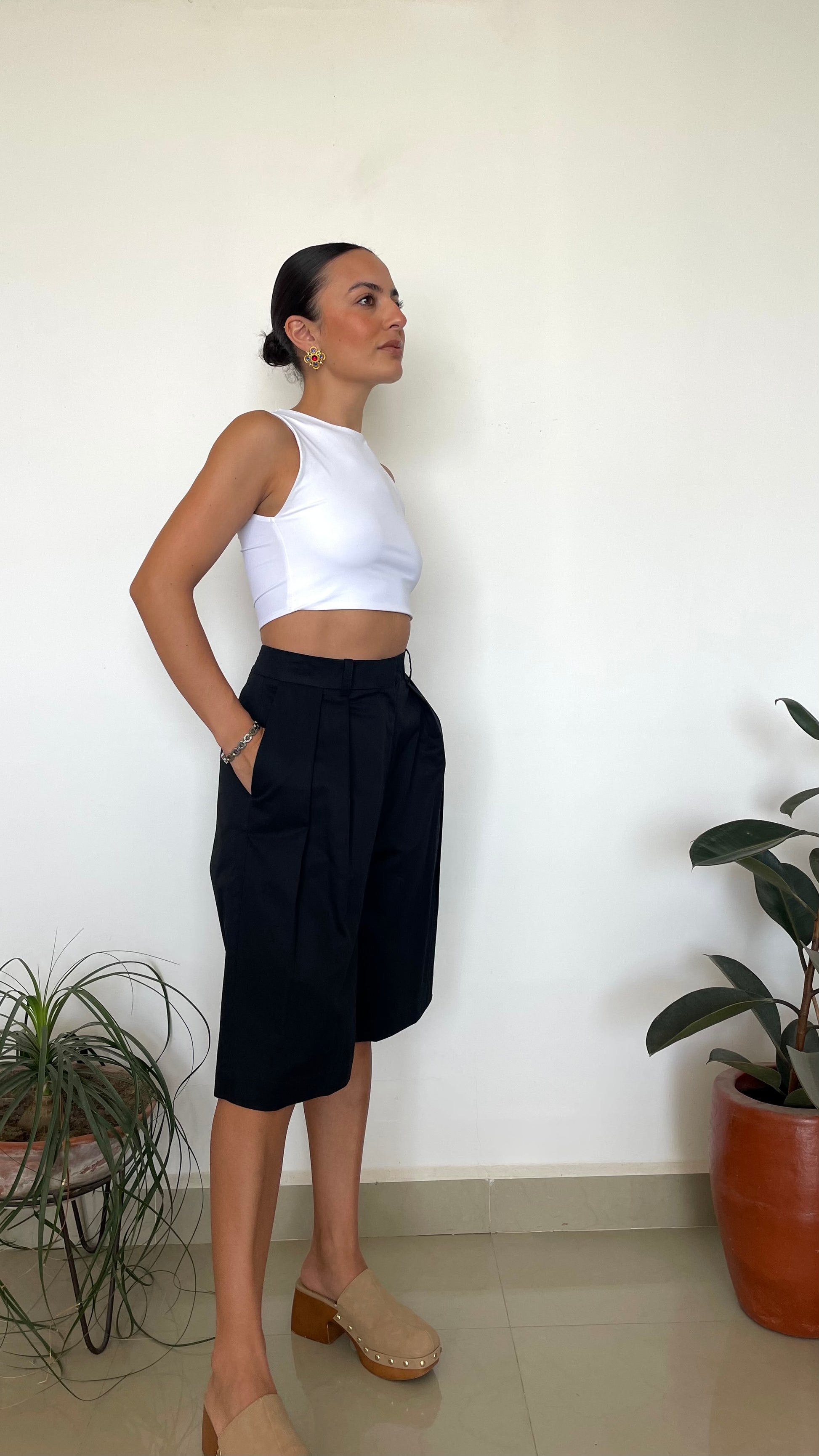 Bermuda blanca con pinzas. Corte sastre. High Waisted.